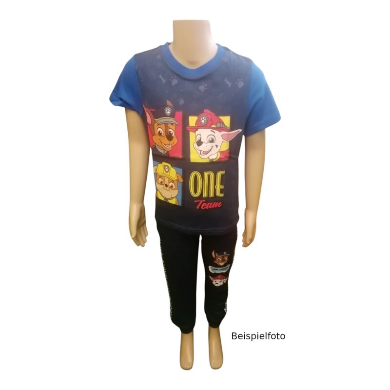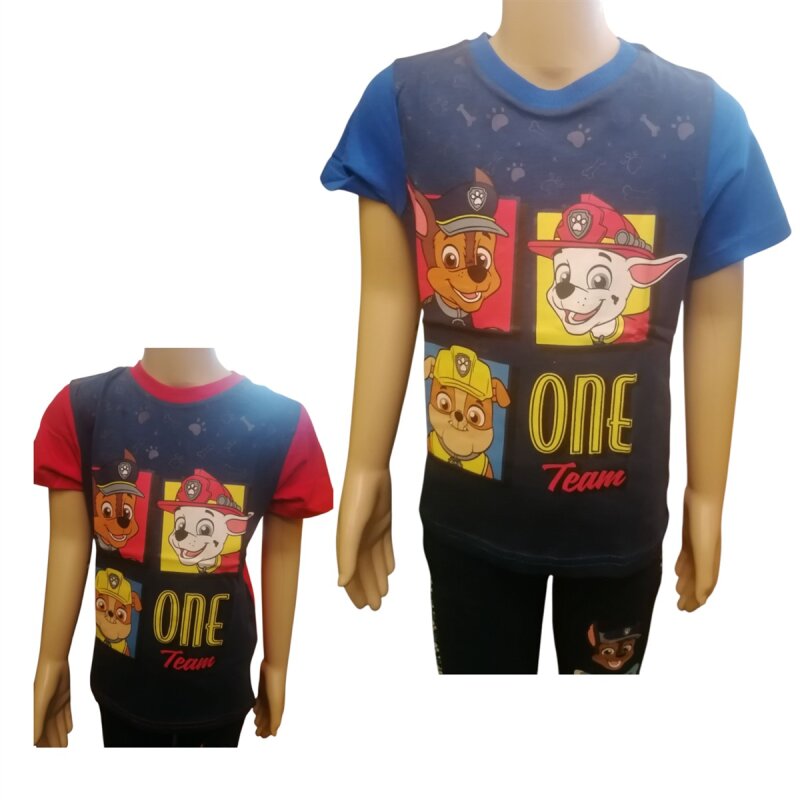 PAW Patrol Kurzarmshirt „One Team“ – Dunkelblau mit roten oder hellblauen Ärmeln, Größen 98–128